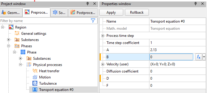 FlowVision 3.15 introduces a universal physical process editor, allowing users to define their own mathematical models using transport equations of convection, diffusion, and reaction. This enables implementation of novel processes such as thrombus modeling, residence time analysis, and industrial processes like vulcanization. Coefficients and constants are handled through the formula editor.