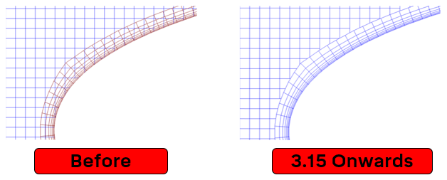 The boundary layer grid is no longer an overlapping mesh but is integrated into the main grid. This improves calculation stability and accuracy near surfaces, especially where flow separation occurs.