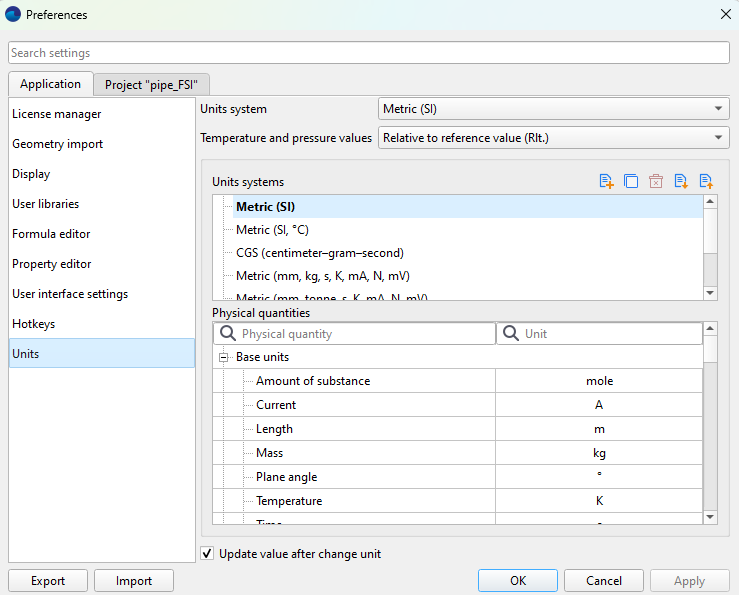 Every physical quantity now carries its own dimension. Users can select from SI, CGS, or custom units, build their own unit packages, and apply them to projects. Automatic conversion ensures consistency across simulations.