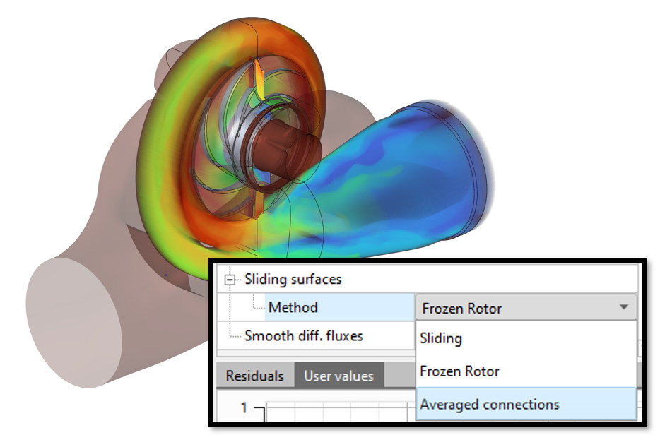 The new 'Averaged Connections' method for rotor–stator interaction achieves better accuracy than the Frozen Rotor method and is faster than the Sliding Mesh method, making it ideal for turbomachinery problems.